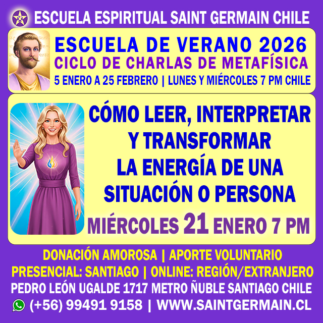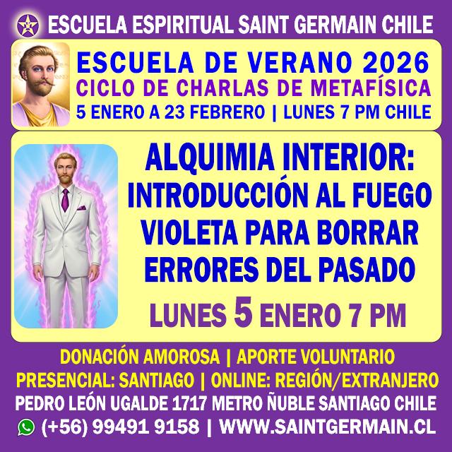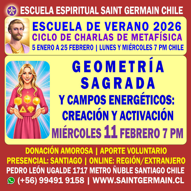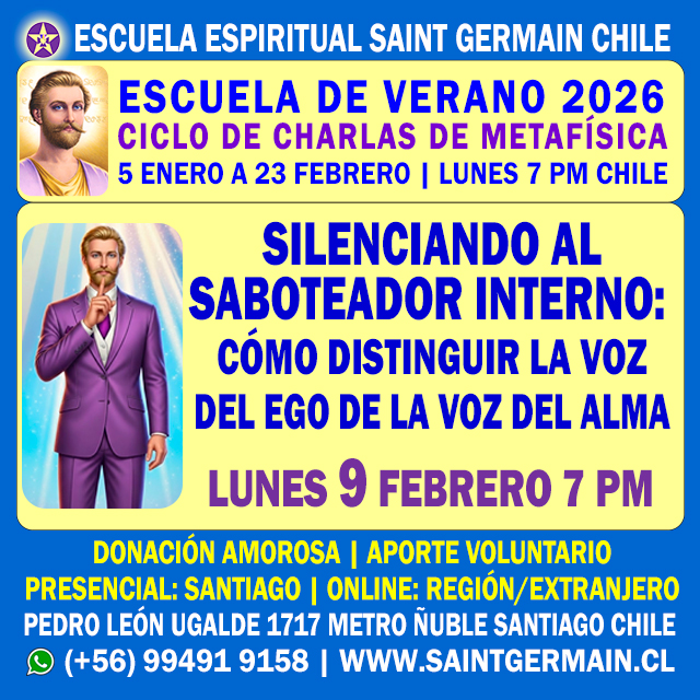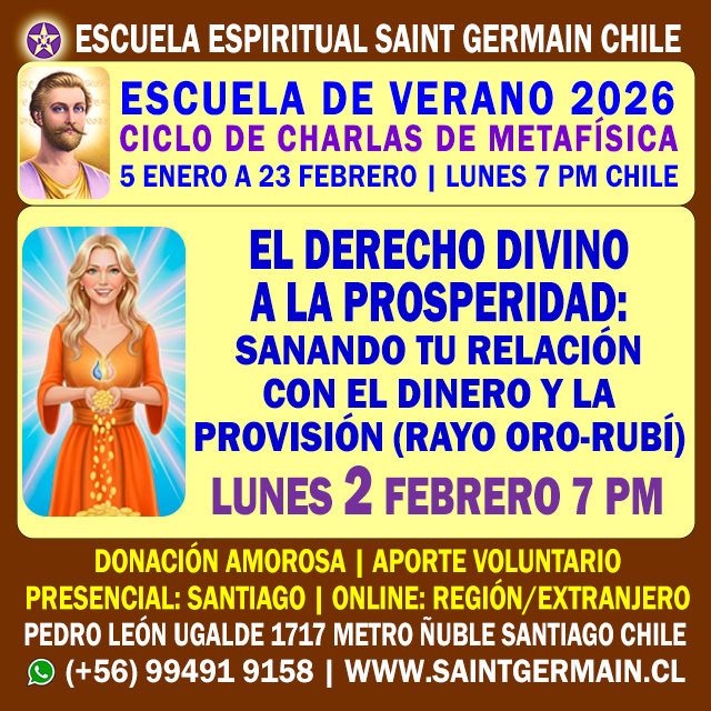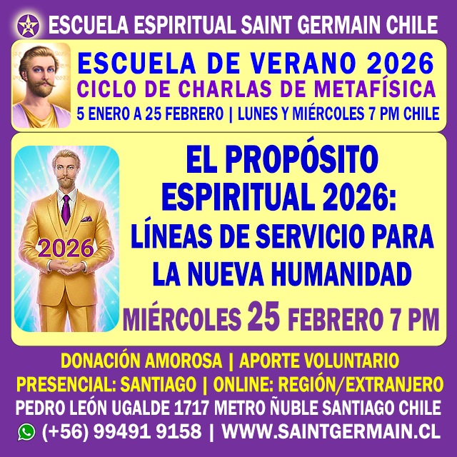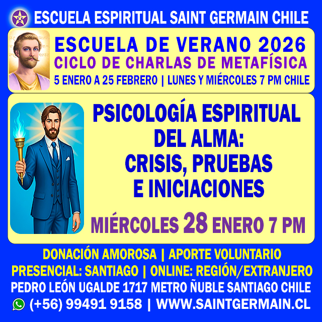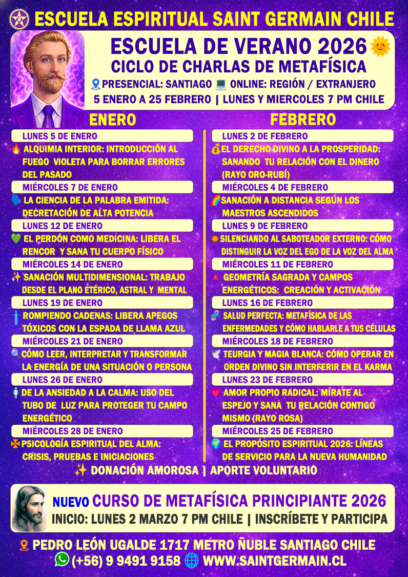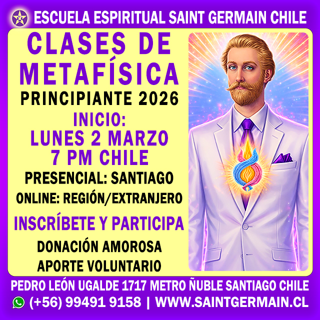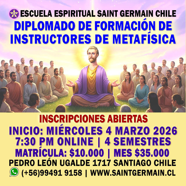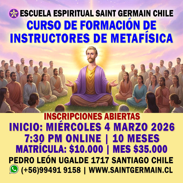 CURSO DE FORMACIÓN DE INSTRUCTORES DE METAFÍSICA | Inicio: Miércoles 4 de Marzo de 2026 7:30 pm | Duración 10 meses | Online | Inscripciones abiertas | Cupos limitados | (+56) 994919158 | www.saintgermain.cl