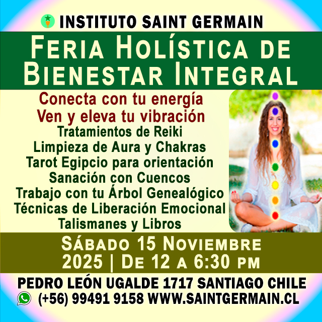 FERIA HOLÍSTICA DE BIENESTAR INTEGRAL | Sábado 15 Noviembre 2025 de 12 a 6:30 pm | (+56) 994919158 | www.saintgermain.cl