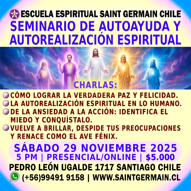 SEMINARIO DE AUTOAYUDA Y AUTOREALIZACIÓN ESPIRITUAL | Sábado 29 Noviembre 2025 | 5 pm Chile | Presencial/Online | (+56) 99491 9158 | www.saintgermain.cl