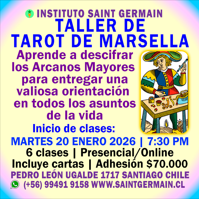 TALLER DE TAROT DE MARSELLA | Inicio: Martes 20 de Enero de 2026 | 19:30 hrs. |  Inscríbete en (+56) 99491 9158 o www.saintgermain.cl